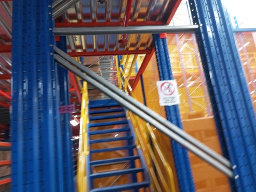 Selective Metal Rack Type Loading Mezzanine, Surface area 21,224 m2 (188x117x11m) with 4 levels, includes mezzanines, fire protection system, lighting system, slides and 6 cargo elevators with 950 kg each in 4 stops, packing conveyors.. Location: Reynosa, Tamaulipas