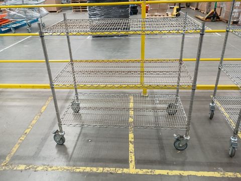 Uline Lote de (50) estantes moviles, Formed by approximately (50) pcs of metal shelves of 4.5 or 6 grid type shelves, dimensions: 0.90x0.45x1.75m. (Images are illustrative). Location: Tijuana, B.C.