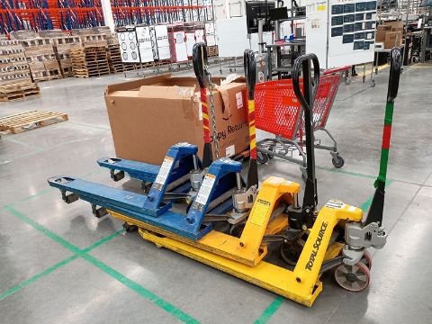 Lot of (14) Pallaet jacks, of 5500 lbs different brands, distributed throughout the plant. Location: Reynosa, Tamaulipas