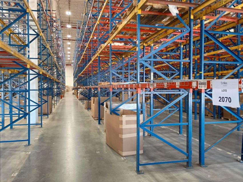 Selective type cargo rack, (24) sections, (5) load levels, (26) 42"x395 frames, (226) 4"x96" beams, (144) 46" grids.. Location: Tijuana, B.C.
