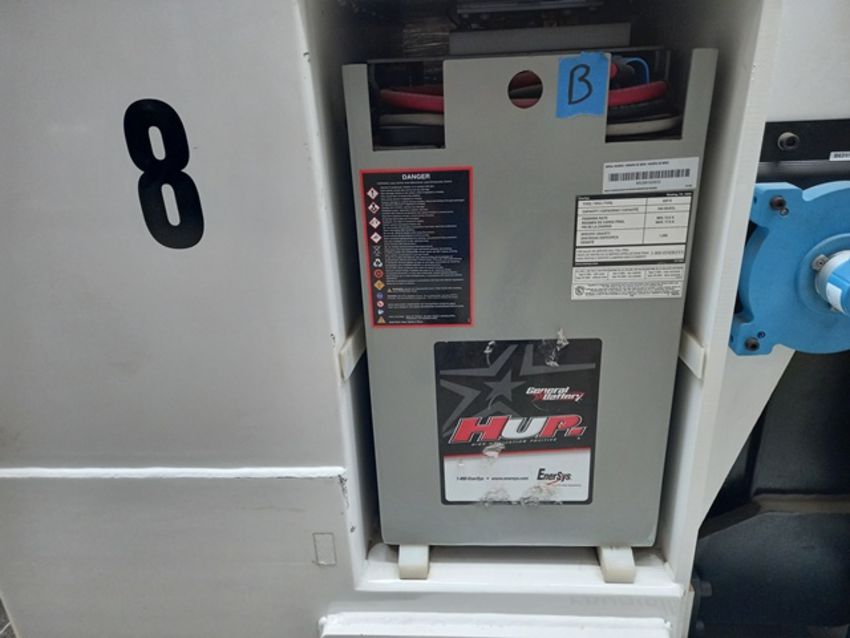 Egemin Automation CBV 8905 LX AGV stacker, Year: 2015, Serial: 7845, Unit weight 9,940 lb., capacity 3,000 lb. at 120" tall and 1,200 lbs. at 350" height, speed 300 FPM, reverse 120 FPM., general arrangement no. BRLMV1-01, final assembly no. 900163-01, Reach-counter balance type model, with 48v battery.; (TAG: BLM-081675). Location: Cuautitlán, Estado de México