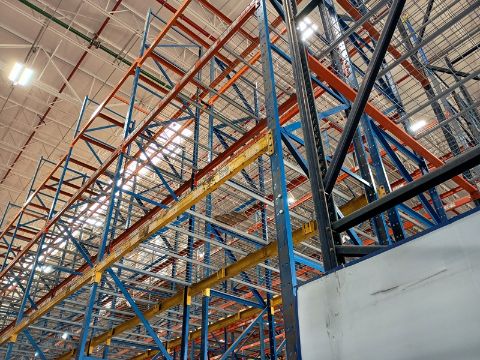 Selective type cargo rack, (24) sections, (5) load levels, (25) 42"x395 frames, (228) 4"x96" beams, (160) 46" grids.. Location: Tijuana, B.C.