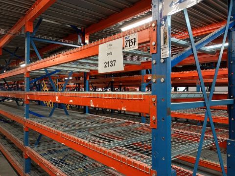 Selective type cargo rack, (19) sections, (22) load levels, (23) 54"x395 frames", (664) 4"x96" beams, (664) 46" grids (does not include any mezzanine structure load elements).. Location: Tijuana, B.C.