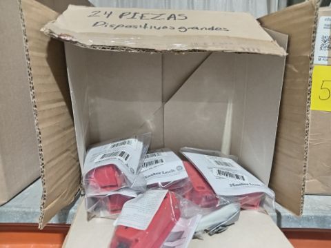 LOT OF (1087) PIECES OF VARIOUS MATERIALS, COMPRISED OF: (374) VALVE LOCKS, (279) SECURITY LOCK HOLDER, (69) JAWS (DICE) TERMINALS 22-6 AWG, (27) GREENLE INDENTAR CLAMP JAWS, (181) MASTER CIRCUIT BREAKER LOCKING DEVICE, (52) BASES P/BLOCK P/VALV. UNIV. BRADY, ETC. (REQUEST DETAILS). LOCATION: PARAISO, TABASCO
