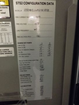 { Choice of lots: 216I, 216J, 216K } EMERSON LIEBERT STS2/PDU TRANSFER SWITCH, YEAR: D09L4V005, 480-208V/ 182-400 AMP; (TAG: SATRING 12). LOCATION: MONTERREY, N.L.