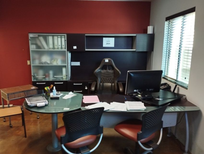 LOT OF OFFICE FURNITURE, CONSIST: (1) MANAGERIAL WORKSTATION WITH FILE CABINET, (2) BOOKCASES, (1) LEATHER MANAGERIAL CHAIR WITH ARMS, (2) ARMLESS TASK CHAIRS, (2) WOODEN COFFEE TABLES, AND (2) DECORATIVE PLASTIC FLOWER POTS.. LOCATION: MAZATLÁN, SIN.