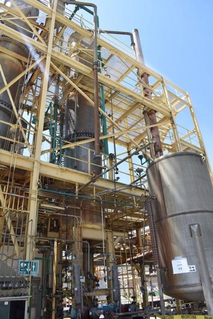 { Choice of lots: 32 } ABSORTION COLUMN No. 2, CAPACITY: 23.58 m3 (BODY AND COVER), STAINLESS STEEL ASTM-240 TYPE 430 MANUFACTURED, DIMENSIONS: 1657.4 MM DIAM X 11688.8 MM HEIGHT, THICKNESS: 5/8", 3 SECTIONS, NUMBER OF DISHES: 35, STAINLESS STEEL MANUFACTURED, 1657 MM DIAM., WITH 3/4" COIL, CED. 40, DESIGN PRESSURE 125 PSI., EMPTY WEIGHT: 19,731.3 Kg.; (TAG: NO. 2). LOCATION: DINAMITA GOMEZ PALACIOS, DURANGO
