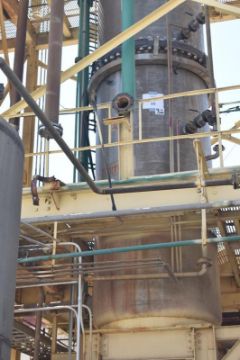 ABSORTION COLUMN , CAPACITY: 23.58 m3 (BODY AND COVER), STAINLESS STEEL ASTM-240 TYPE 430 MANUFACTURED, DIMENSIONS: 1657.4 MM DIAM X 11688.8 MM HEIGHT, THICKNESS: 5/8", 3 SECTIONS, NUMBER OF DISHES: 35, STAINLESS STEEL MANUFACTURED, 1657 MM DIAM., WITH 3/4" COIL, CED. 40, DESIGN PRESSURE 125 PSI., EMPTY WEIGHT: 19,731.3 Kg.; (TAG: NO. 2). LOCATION: DINAMITA GOMEZ PALACIOS, DURANGO