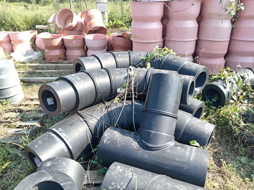 LOT OF (51) PCS OF HIGH DENSITY POLYETHYLENE CONNECTIONS AND (25) MTS OF 25 CMS PVC EYE BAND, COMPRISED OF: TRANSCISION NIPPLE WITH DIAMETER OF 4", 8", 10", 12", REDUCED TEE'S OF 12"X6", 8" AND 10", 90°AND 45° ELBOWS WITH DIAMETERS OF 10", 12", (25) MTS OF 25CM PVC EYE BAND.. LOCATION: PARAISO, TABASCO