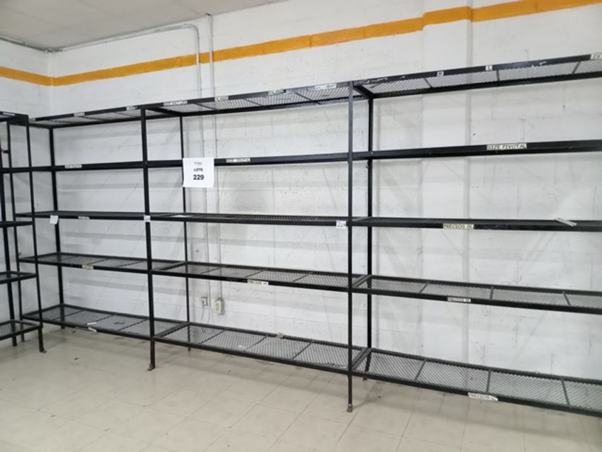 LOT OF (12) PCS. OF METAL RACK-TYPE SHELVES, CONSISTING OF: (10) 6-LEVEL GALVANIZED SHEET SHELVES, 1.20MX 2.20M, (1) CARBON STEEL SHELF, 4.90MX 2.10M, (1) CARBON STEEL SHELF, 3.30MX 2.10M.. LOCATION: CAMPECHE, CAMPECHE