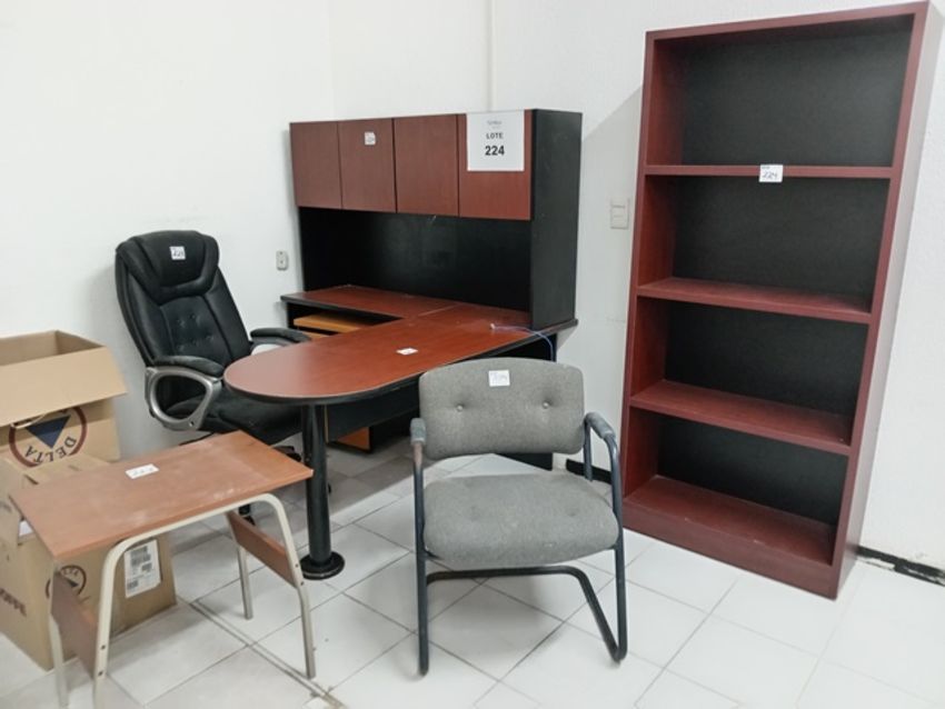OFFICE FURNITURE LOT, TRAINER BY: (24) APPROXIMATELY PCS. OF FURNITURE, INCLUDING "L" TYPE DESKS, TABLES, CABINETS, SHELVES, BOOKCASES, DRAWERS, EXECUTIVE CHAIRS, WAITING CHAIRS, ETC.. LOCATION: CAMPECHE, CAMPECHE