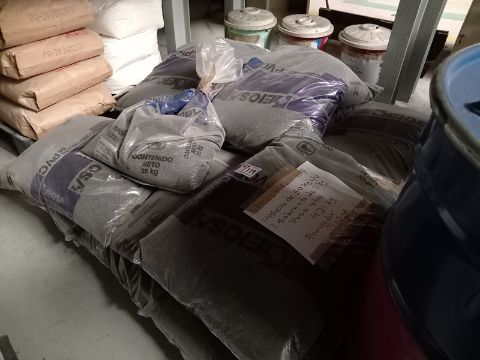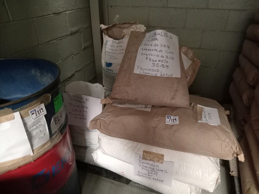 Lot of chemical additives for PVC, Formed by: (4) drums of chemicals for PVC, (18) cans of ink for PVC, (6) bags of impact modifier, (13) bags of compound for PVC, (10) bags of processing aids, (20) kg of titanium dioxide, (2) pieces of formaldehyde resin, lubulop wax, violet concentrate.. Location: Tlalnepantla, Estado de Mexico