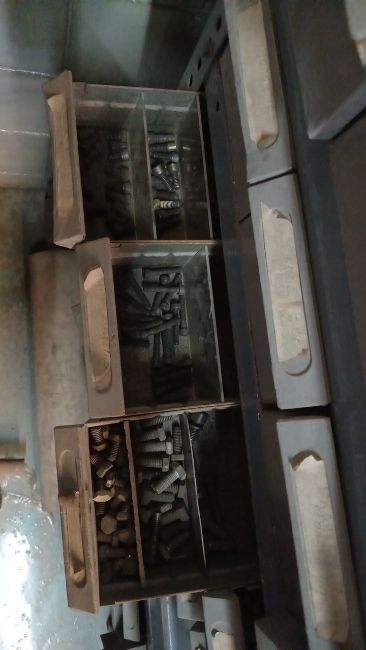 Lot of diferent materials, Consisting of (1) shelf with (200 pcs. approx.) mechanical seals, screws, plugs, condulets, nails, rivets, nuts, locks, clamps, reducers, screws, (includes shelf.). Location: Tlalnepantla, Estado de Mexico
