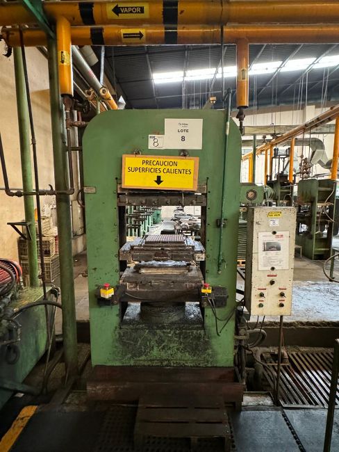 { Choice of lots: 307, 308, 309, 310 } Joyma 115 Tons Molding press, 115 Ton capacity, dimensions: piston diameter: 10-3/8", cavities: 3, cavity spacing: 9.5", front plate: 26.52", bottom plate: 15.5", Siemens S7 200 PLC control, fully operational; (TAG: BL04141G). Location: Guadalajara, Jalisco