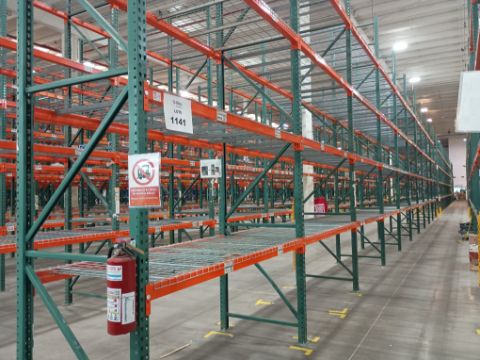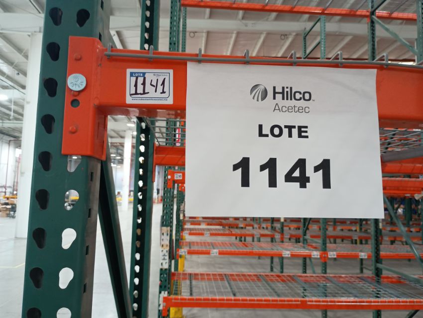 { Choice of lots: 1139, 1140, 1141, 1142 } 240 positions approx. Selective rack, (24) sections with 4 load levels, approximately 42"x200" (1.07x5.08 m) frames, 2-1/2"x96" (2.44 m) beams, and 43"x46" (1.09x1.17 m) grilles, with load mounts (illustrative photos, only the components of the row indicated are included).; (TAG: Pasillo 52 Fila A). Location: Tijuana, B.C.