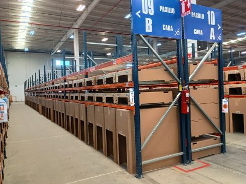 { Choice of lots: 1067, 1068, 1069, 1070, 1071, 1072, 1073, 1074, 1075, 1076, 1077 } 180 positions approx. Selective rack, (32) sections with 3 load levels, 42"x120" (1.07x3.05 m) frames, 2-1/2"x96" (2.44 m) beams, and 43"x46" (1.09x1.17 m) racks, with load supports (illustrative photos, only the components of the row indicated are included).; (TAG: Pasillo 9 Fila B). Location: Tijuana, B.C.