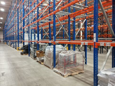 { Choice of lots: 1122, 1123, 1124, 1125, 1126, 1127, 1128, 1129, 1130, 1131 } 300 positions approx. Selective rack, (33) sections with 5 load levels, frames of 42"x365" (1.07x9.27 m) approximately, beams of 2-1/2"x96" (2.44 m) and 2-1/2"x144" (3.66 m), with some grilles of 43"x46" (1.09x1.17 m), with load supports (illustrative photos, only the components of the row indicated are included).; (TAG: Pasillo 43 Fila B). Location: Tijuana, B.C.