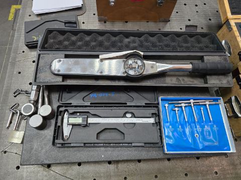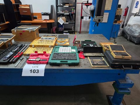 Approximately (30) pcs of measuring instruments, consisting of: (1) caliper calibration set, (4) micrometer sets, (8) dial indicators, (1) torque meter, (2) digital torque meters, (3) block pattern sets, precision square set, (3) digital calipers, (2) depth micrometer sets, plus various measuring instruments. Location: Arteaga, Coahuila