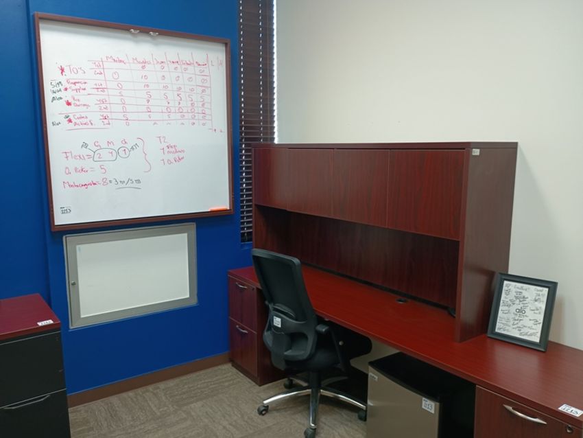 Lot of (22) pcs office furniture, consisting of: (1) straight wooden desk, with 2 drawers and bookcase, (1) wooden "U" desk with 3 drawers with 2 drawers, 4-compartment libero with door, (4) small wooden desks, with 2-drawer cabinet, (1) small wooden desk with 2-drawer cabinet and 4-compartment bookcase with door, (1) Minibar brand: Mabe, (9) office chairs metal frame, fabric lining, (3) adjustable plastic desks, (2) no break. Location: Tijuana, B.C.